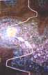These paintings derive from contour maps, patterned by the rocks and minerals of local geology.